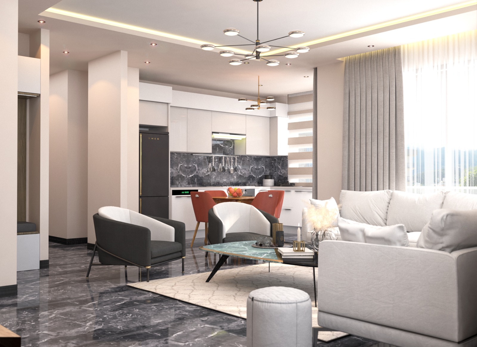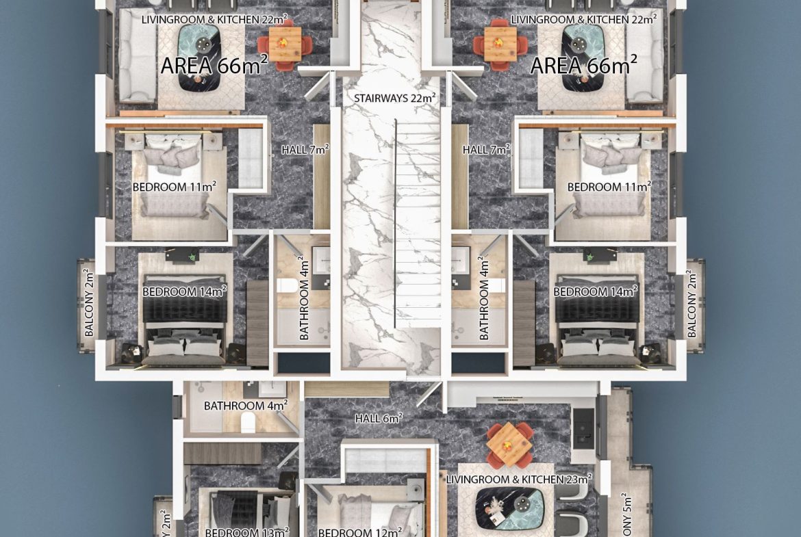 This project is located in the Alsancak region the pearl of Kyrenia within walking distance to the main road and all the amenities and is also within 2,3 minutes driving distance to the famous Camelot beach.